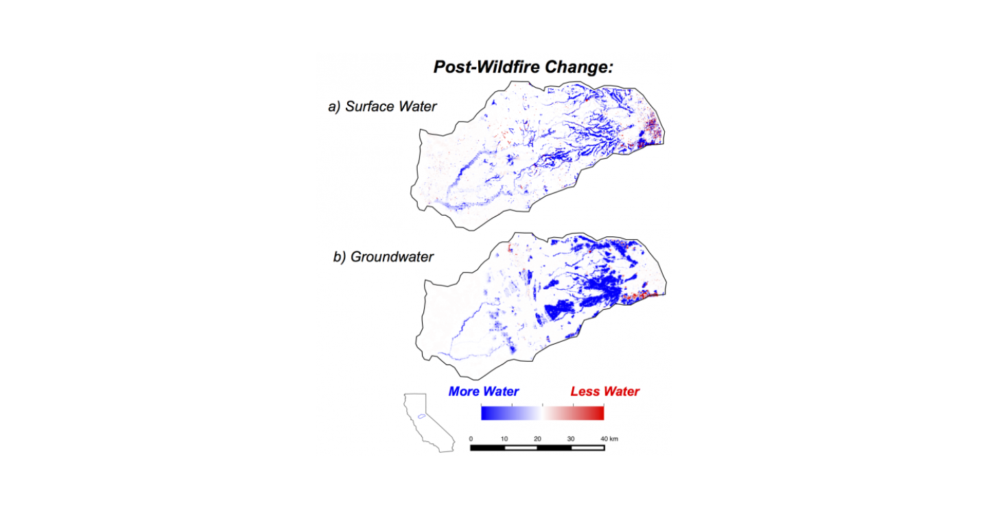 Their research, recently published in the journal Hydrological Processes, showed some informative yet counterintuitive results. Whereas evapotranspiration—the combination of evaporation from the ground, canopy surfaces, and sublimation and transpiration by plants—generally decreases in postfire simulations, some regions experience an increase due to changes in surface water run-off patterns in and near burn areas. Postfire conditions also yield greater winter snowpack and subsequently greater summer run‐off as well as groundwater storage in the postfire simulations.