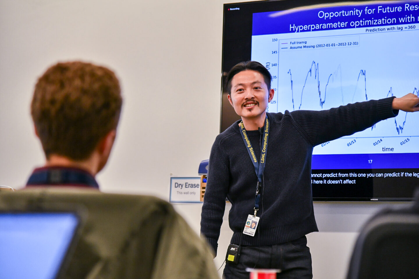 “By going through this process to prepare my talk, I learned about how to convey my ideas and work to a general audience efficiently,” said Jangho Park, a CCSE postdoc whose talk focused on input structure selection for time-series prediction with machine learning. “And with the video, I was able to gain knowledge about good and bad habits of these kinds of presentations and objectively review my talk.”