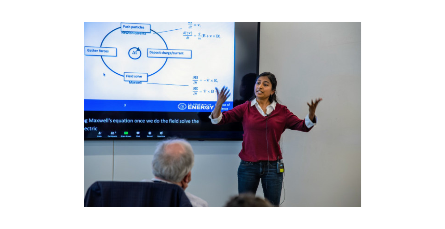 CCSE postdoc Reva Jambunathan, whose talk was on exascale modeling of pulsar magnetospheres using the WarpX code, appreciated the slide laydown and dry run leading up to the event and thinks CSA should hold similar educational events for postdocs in the future. “We learned a lot of useful tips for giving a talk to a general audience, especially for project reviews and for new solicitations,” she said.